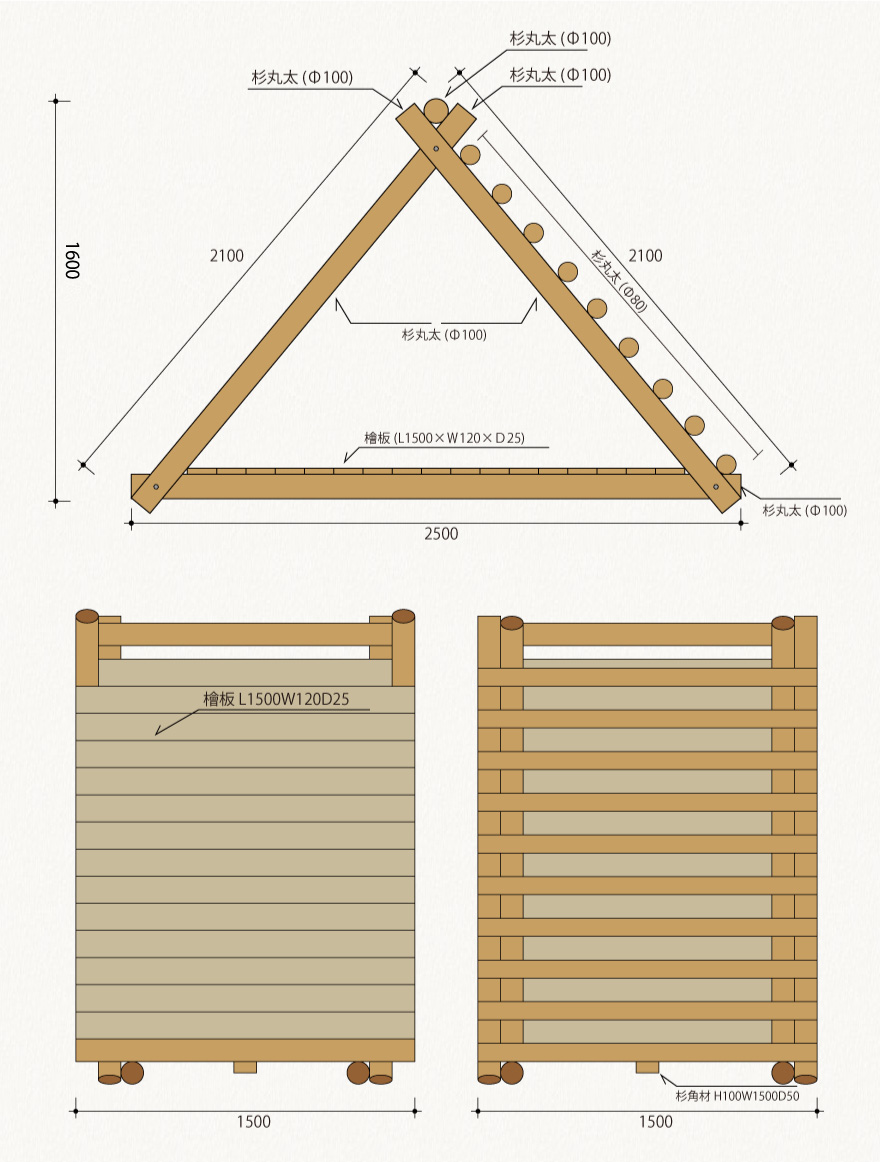 素 材:国産ヒノキ 国産杉丸太
